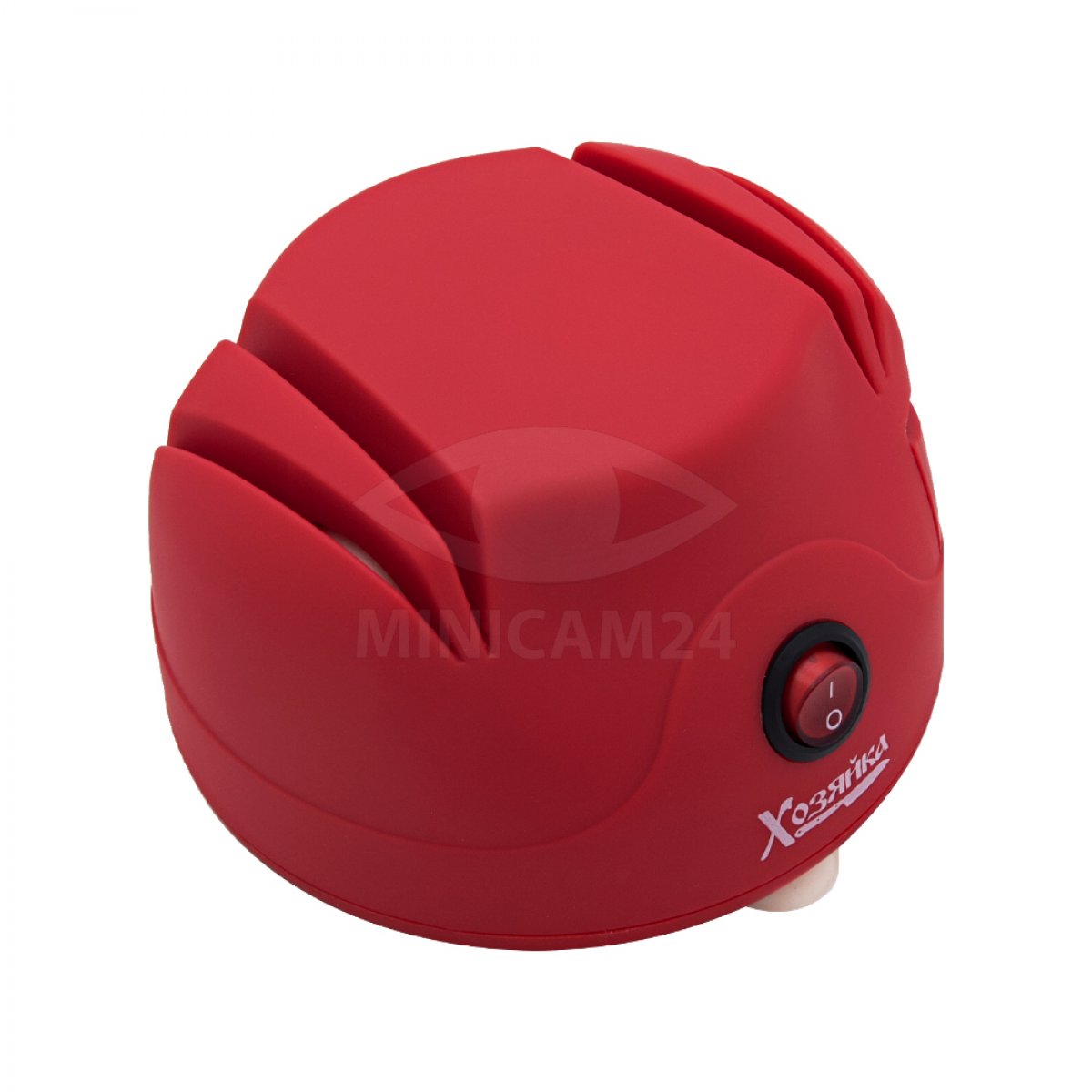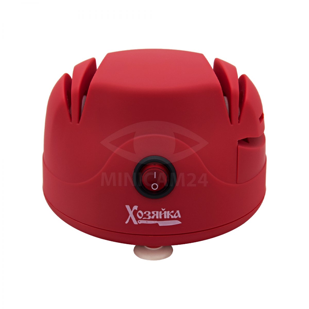 Оригинальная круглая точилка для ножей оснащена двумя абразивными дисками для грубой заточки и доводки лезвий ножей. Сбоку корпуса предусмотрен слот для заточки ножниц и отверток. Время заточки ножа от 1 до 10 минут, время доводки лезвия не более 10 секунд. Питается прибор от сети переменного тока. Для фиксации ножеточки на поверхности стола предусмотрены три присоски.