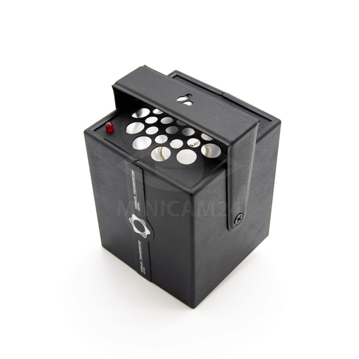 Ультразвуковое устройство для отпугивания грызунов. В основе прибора мощный излучатель ультразвуковых волн в диапазоне, плавающем от 18 до 70кГц. Высокая мощность в сочетании с постоянным изменением частоты не дают грызунам приспособиться и причиняют постоянное беспокойство. В результате мыши, крысы и другие грызуны покидают помещение где установлен отпугиватель. Один прибор в состоянии защитить от грызунов помещение площадью до 400 м2. Отпугиватель безвреден для человека и домашних животных.