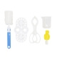 Подогреватель детского питания рассчитан на загрузку 2 бутылочек. Устройство имеет пять температурных режимов, позволяющих размораживать и разогревать продукты, поддерживать заданную температуру и стерилизовать емкости. Прогрев осуществляется по принципу водяной бани, его температуру можно настроить самостоятельно от 30 до 100 градусов. В комплекте есть аксессуары для извлечения горячих бутылочек, их мытья и хранения. Питается подогреватель от сети переменного тока.