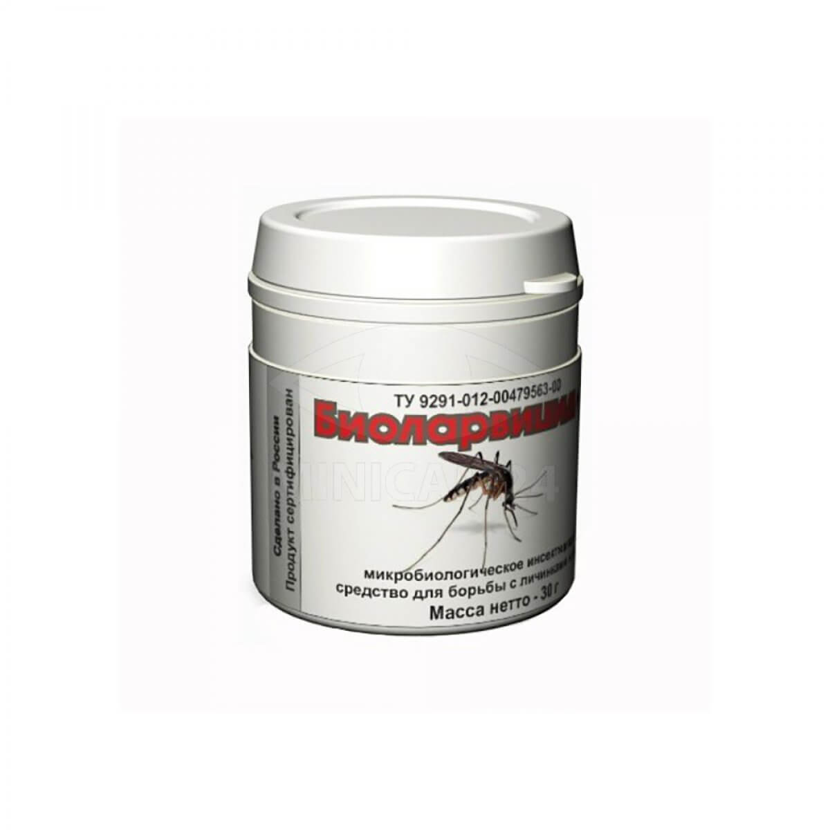 Уничтожитель личинок комаров биологический Биоларвицид-30 – инсектицид биологического типа, используемый для борьбы с распространением комаров, которые способны передавать малярию или другие заболевания. Производится в виде белого порошка, в состав которого входят особые виды бактерий, а также наполнителя-стабилизатора. При попадании в жидкую среду бактерии начинают активно размножаться и распространяться по территории водоема. Данные бактерии, попадая в пищеварительный тракт личинок комаров, вызывают нарушения жизнедеятельности, после чего личинки погибают. Станет полезен для людей, у которых жилые постройки находятся возле водоемов, особенно со стоячей водой, где происходит интенсивное размножение комаров.